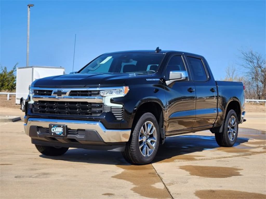 Black 2026 Chevrolet Silverado 1500 LT RWD 8-Speed Automatic 2.7L I4 Turbocharged DOHC 16V LEV3-SULEV30 310hp 8-Speed Automatic, Jet Black Cloth. Price includes: $1000 - Bonus Cash. Exp. 03/02/2026 $3000 - Customer Cash. Exp. 03/02/2026