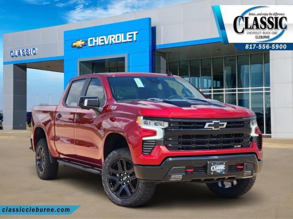 Radiant Red Tintcoat 2026 Chevrolet Silverado 1500 LT Trail Boss 4WD 10-Speed Automatic 3.0L I6 10-Speed Automatic, 4WD, Jet Black Leather. Price includes: $1250 - Customer Cash. Exp. 04/30/2026 $750 - Bonus Cash. Exp. 04/30/2026